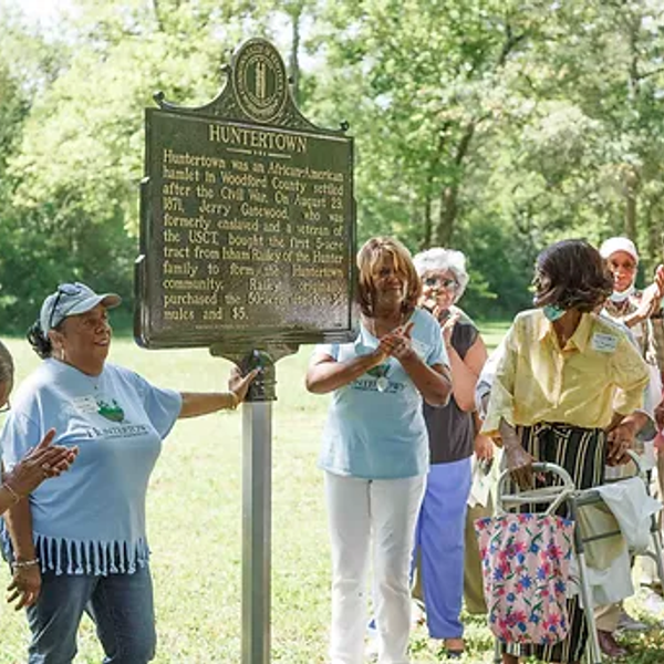 This area has informational signs that provide and orientation to and overview of Huntertown Communi…