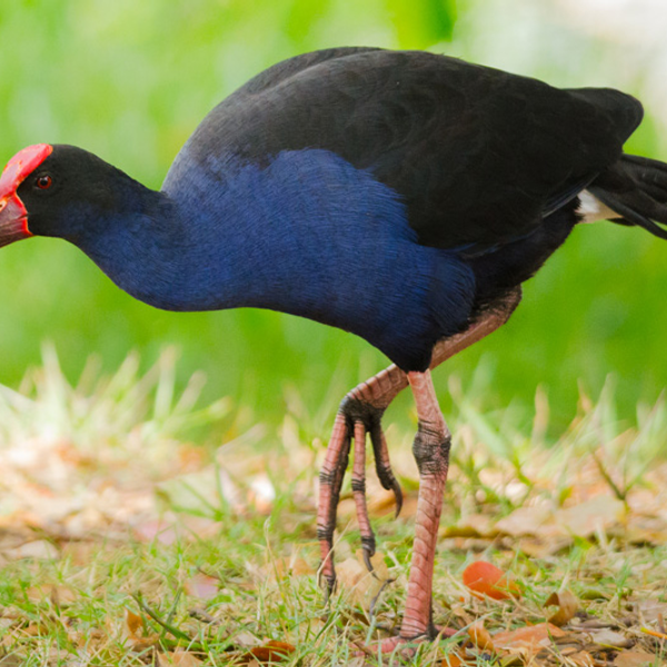 (Porphyrio melanotus) Closely related to cranes, this rail-bird is semi-aquatic and does not fly ver…