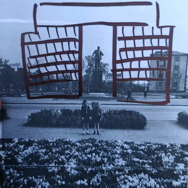 The starting point is in front of Reval Cafe Rävala entrance door with a view of the road. Make sure that behind you are the glass windows of the cafe.