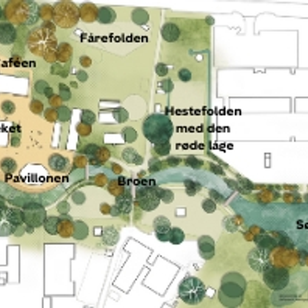 Du begynder historien ved at gå hen til den runde bænk i gården ved biblioteket.